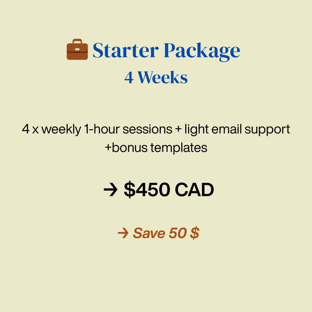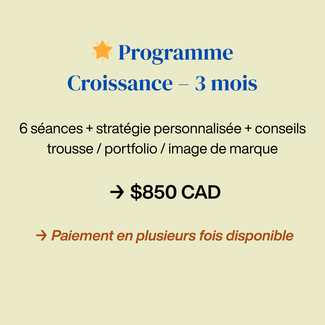 🔸 Tailored 1:1 coaching sessions (Zoom or in person, Montreal)🔸 Portfolio, kit, or social media review
